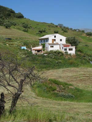 ...Inland Spain is a world away from the hectic bustle of the coast. The accommodation is set in 50 acres of rolling countryside. Access is from the A343, Alora to Antequerra road, 5km of mainly concrete and tarmac, a little hardcore/ compacted gravel. There is normally never a problem with access, though if you know Spain you may understand the concept of 'Tormenta', where Nature may steal the odd village. The main building is a six bedroom farmhouse refurbished in traditional style to keep the rustic flavour. All bedrooms are en-suite. There is a large lounge and dining room, gardens and patio areas, The plunge pool, for hot summer days, is under revision. The view across to El Torcal, a renowned limestone massif, is decorated with the odd isolated whitewashed building. The land is set back from a rural lane giving an atmosphere of tranquility. ...The property was originally bought, in need of attention, with a view to running photographic holidays, only circumstances changed and I no longer fancy the thought of serious housework. There is mains electricity, mains water [currently temporarily disconnected until the pipe is repaired, broken by land movement]. There are four wells. As there are 200,000+ sq metres of land, currently being upgraded to irrigated, there is a lot of potential. I allow a neighbour to graze sheep/goats, but have not gone in to arable farming as I like the peace and tranquility. Goat bells are caming. Previously a wide variety of crops have been grown, one year I had access to more broad beans that I could dream about. ...The location is ideal for trips into the surrounding countryside, horse riding, walking, mountain biking, excursions, almost anything. To me the property is almost priceless, I spent a lot of blood sweat and tears restoring it, only I am realistic. I bought in 2005, when Spain was more corrupt that it is now, at that time everyone paid through the nose, or more accurately corrupt English estate agents. There was a serious amount of under the table exchange involved, and the only other person who had a key entered the property in 2014 and removed all the restoration paperwork so if I am not careful I will being paying far too much in taxes. To that end the transaction will need negotiation, but as I paid 300,000 euro for an array of vertically challenged stones, I would like to walk away with something like £400,000. If I had funds I would build a Hobbit settlement and entice tourists.